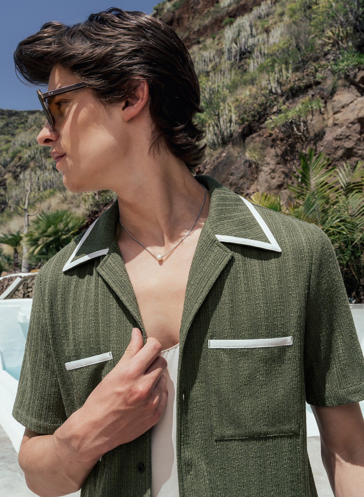 Green 50s Cuban White Trim Shirt