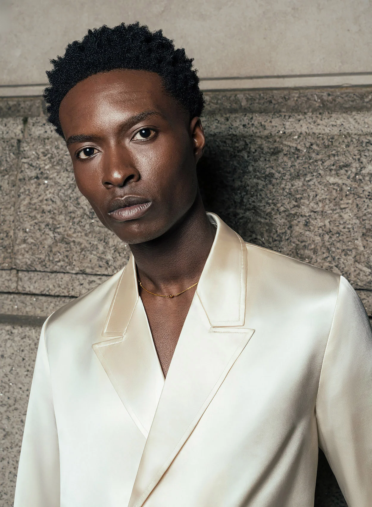 Crafted from smooth satin, this shirt features a double-breasted silhouette for sophistication. Tailored for a slim fit with notched lapels alongside fitted cuffs, it provides a sleek and refined look ideal for events and formal occasions.