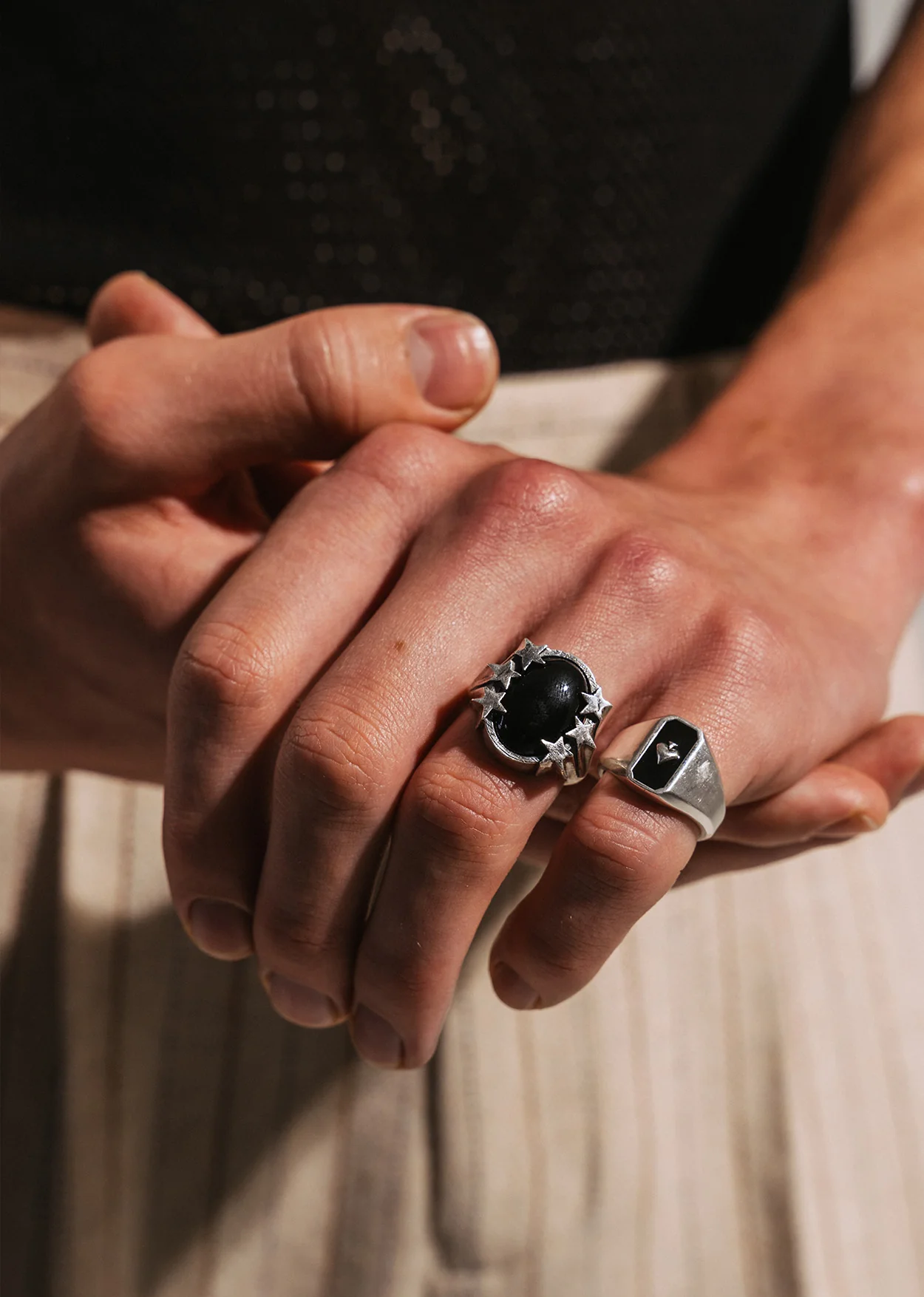 - Bold, geometric signet ring silhouette
